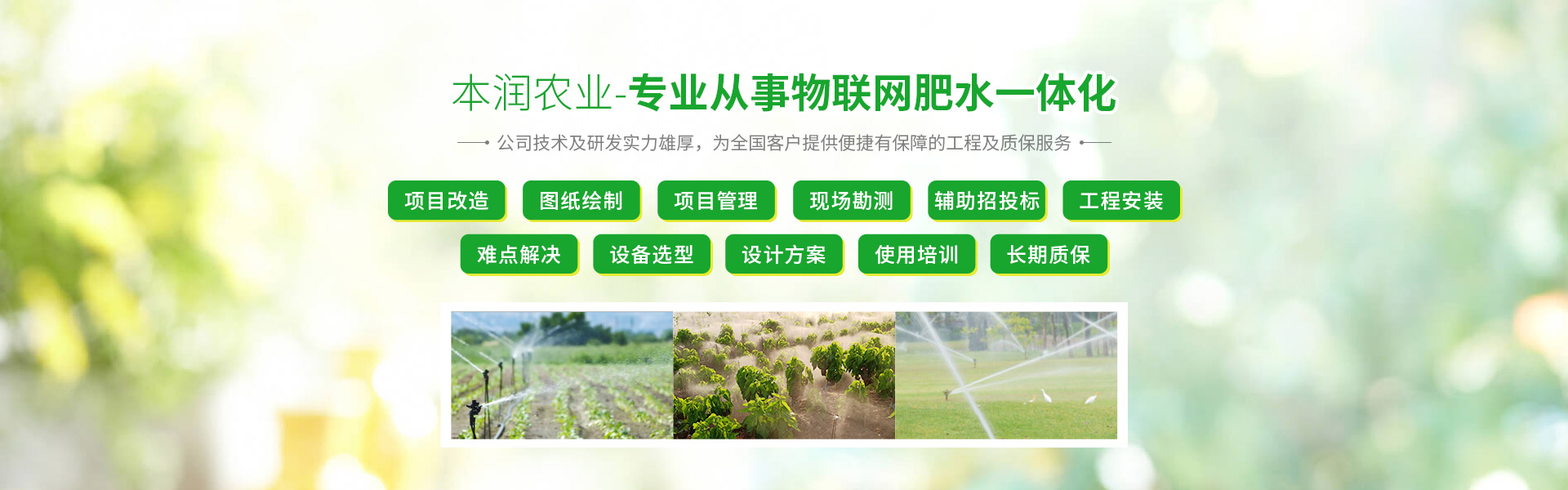 “用心做事,本潤農(nóng)業(yè)”追求無止境,學習無止境,創(chuàng)新無止境,本潤農(nóng)業(yè)將為您打造最專業(yè)最有保障的現(xiàn)代灌溉技術工程